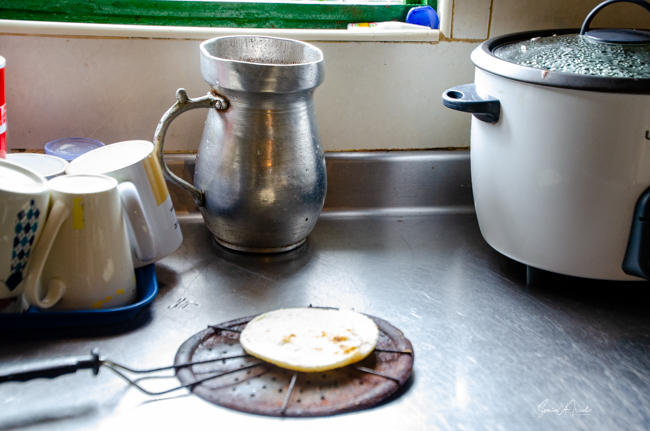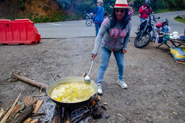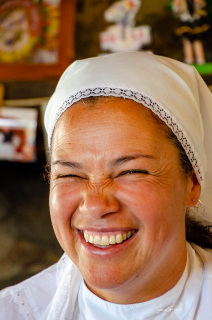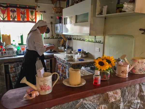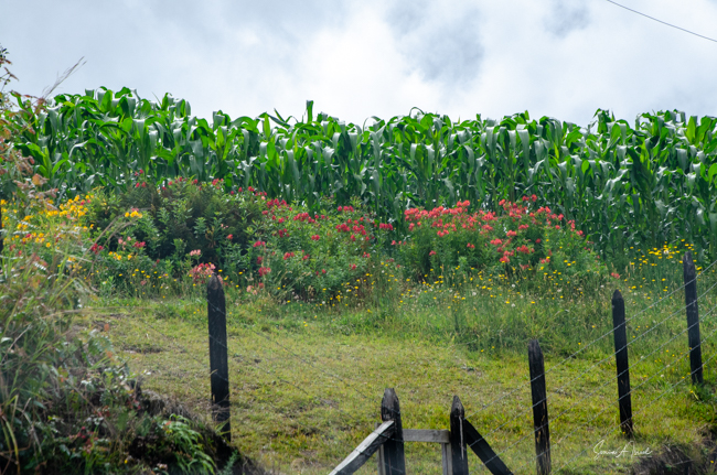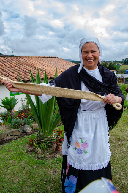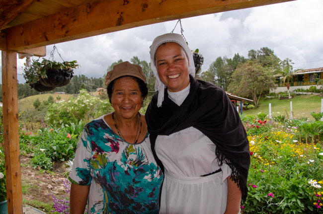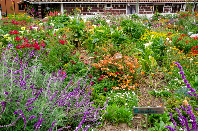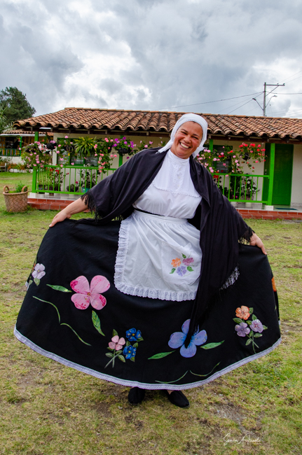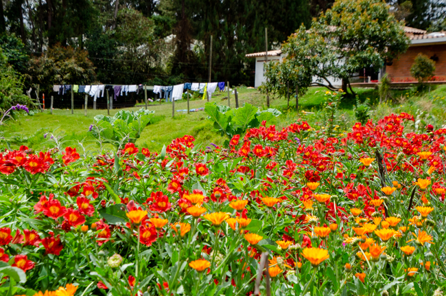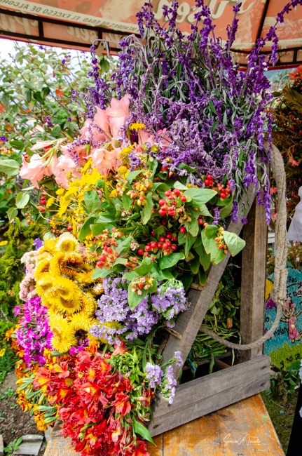 After driving about 15 more minutes, past small restaurants and homes, we finally arrived at Ignacio and Carmen Londono’s flower farm. We stepped out of the car and immediately put on our sweaters. While it had been quite hot in Medellin, here we were at 7000 feet above sea level and it was cold. Carmen came out to great us in the traditional silleteros dress. Yes, more on that later too. We shook hands and she invited us into her home for mint tea. Of course, mint from her garden.