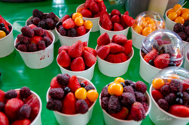 There were a few in a row along with some shops. One was cooking outside. That’s not where we ate. One day we ate at Cesar Cocina. The other day we ate at La Montinita. Both times the meals were the typical Colombian meal – chicken or beef, salad and rice/beans or vegetables.