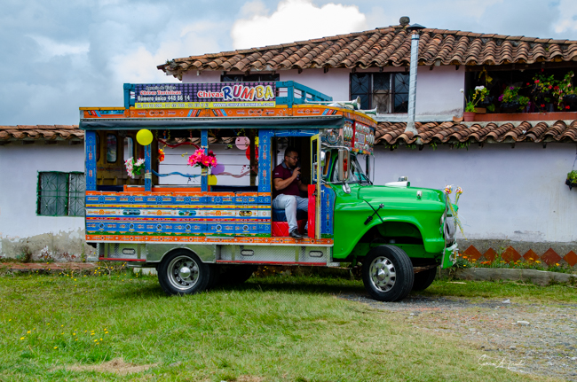 Why? Well, I did explain this in detail in my post, part 8 of Colombia: Coffee and Chiva (please see that post). Here in Santa Elena I did get to see my first one, but it wasn’t a real working bus, rather it was a party bus.