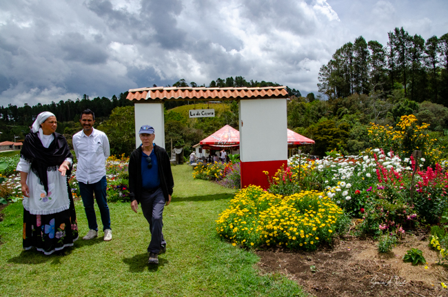 It was time to say good-bye and hit the road. We kissed on both cheeks, and started heading out. Just then a man, carrying a large load of flowers on his back and with a machete at his side walked by. Ignacio had him pose for pictures and then, as he walked on his way, we learned that this man had won the overall award three times.