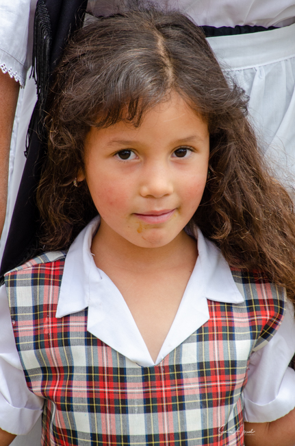 Carmen was wearing the traditional outfit of the silleteros. It was a black dress with flowers on it. It had a shawl for when they wanted to stop in church. It had a pocket in the front for money. The shirt was buttoned up to the top in case it was cold. She wore black sandals that laced up her legs, and a scarf around her head. Children all have the same costume. Juan Carlos told us that he had to have one for his son in Medellin as well as on the day of the flower parade, everyone wears it.