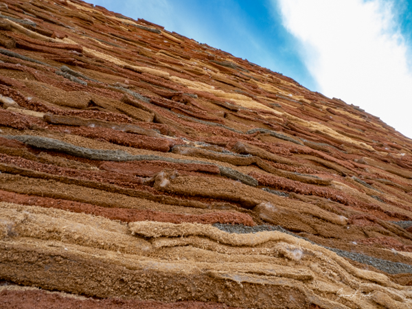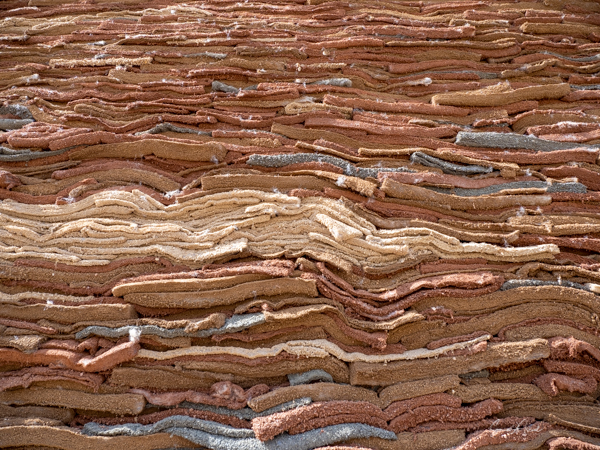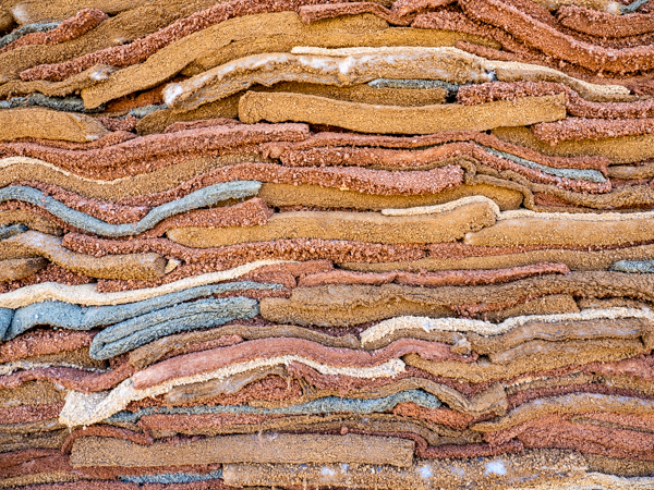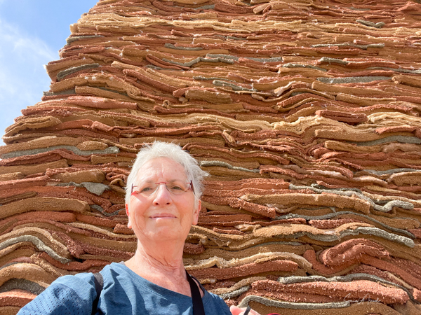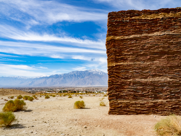 From the distance it just looks like a big wall, but as I approached, I began to see the layers and the textures and the colors. It was a very large monolith made up of stacked pieces of cement, soil and some soft fabric all dyed in colors of the desert, both here in Palm Springs and in Saudi Arabia. I spent about 15 minutes walking around taking in the textures along with the views of the snowcapped mountains.
