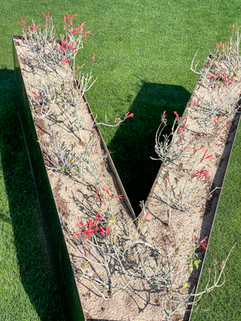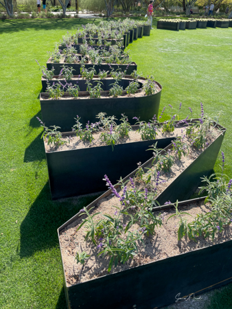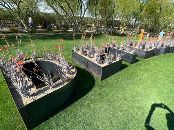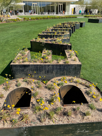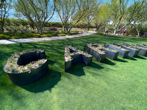 This was my other favorite installation by Ghada Amer who lives in NY but is originally from Cairo, Egypt. It was a garden made up of monolithic letters which spelled out the words Strong, Resilient, Loving, Nurturing, Caring, Beautiful, Determined, all arranged in on the circular Great Lawn at Sunnylands. What better way to describe a woman. Need I say more?