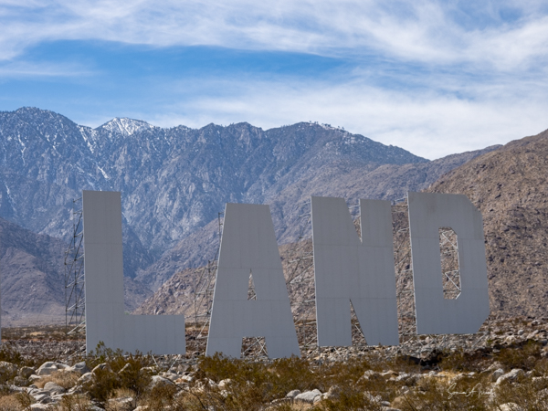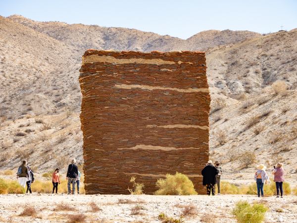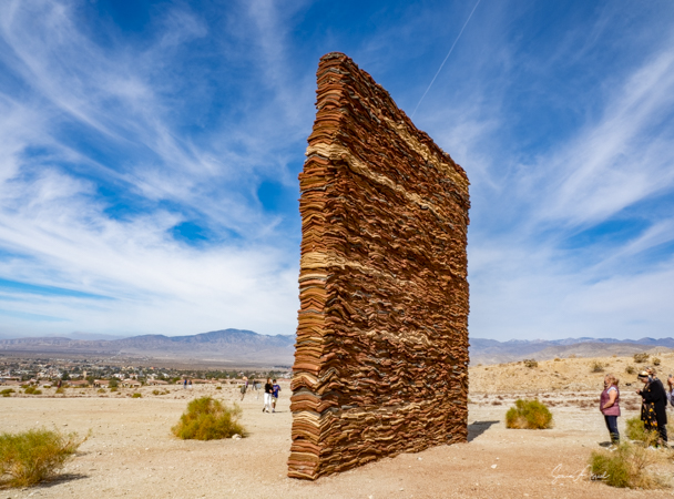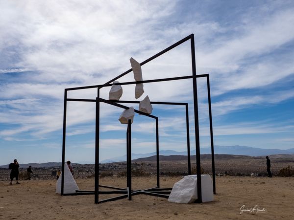 The mission of Desert X is to “produce recurring international contemporary art” exhibits in different desert locations. Each exhibit is on a different site, and given that this is a desert, there are lots of big empty spaces just waiting to be filled with art. The key is that it be public, open to the community, free, and that each exhibit fit into its desert surroundings and “respond meaningfully to the conditions of desert locations, the environment, and indigenous communities promoting cultural exchange and education programs that foster dialogue and understanding among cultures and communities about shared artistic, historical, and societal issues; and providing an accessible platform for artists from around the world to address ecological, cultural, spiritual, and other existential themes.”
