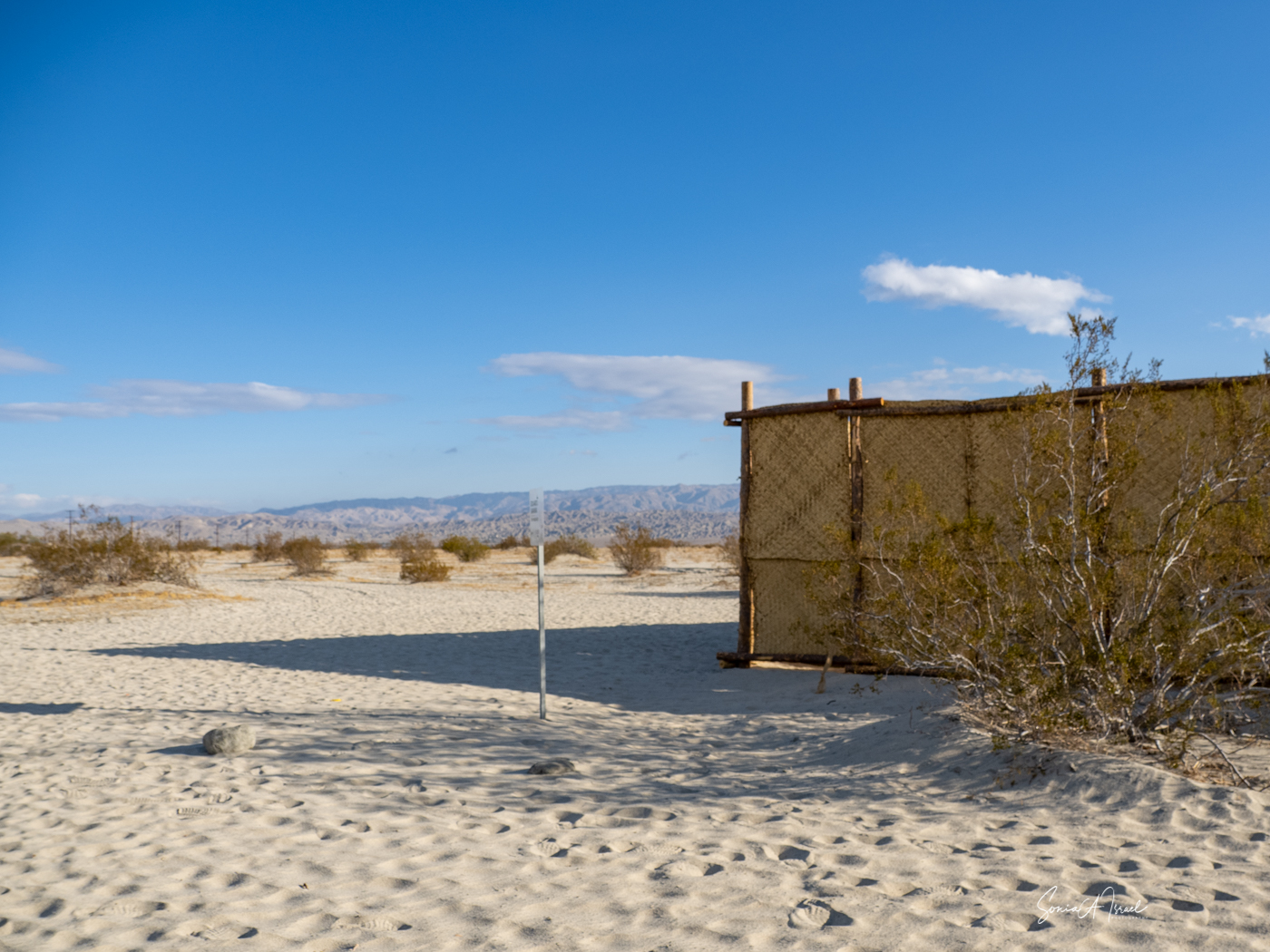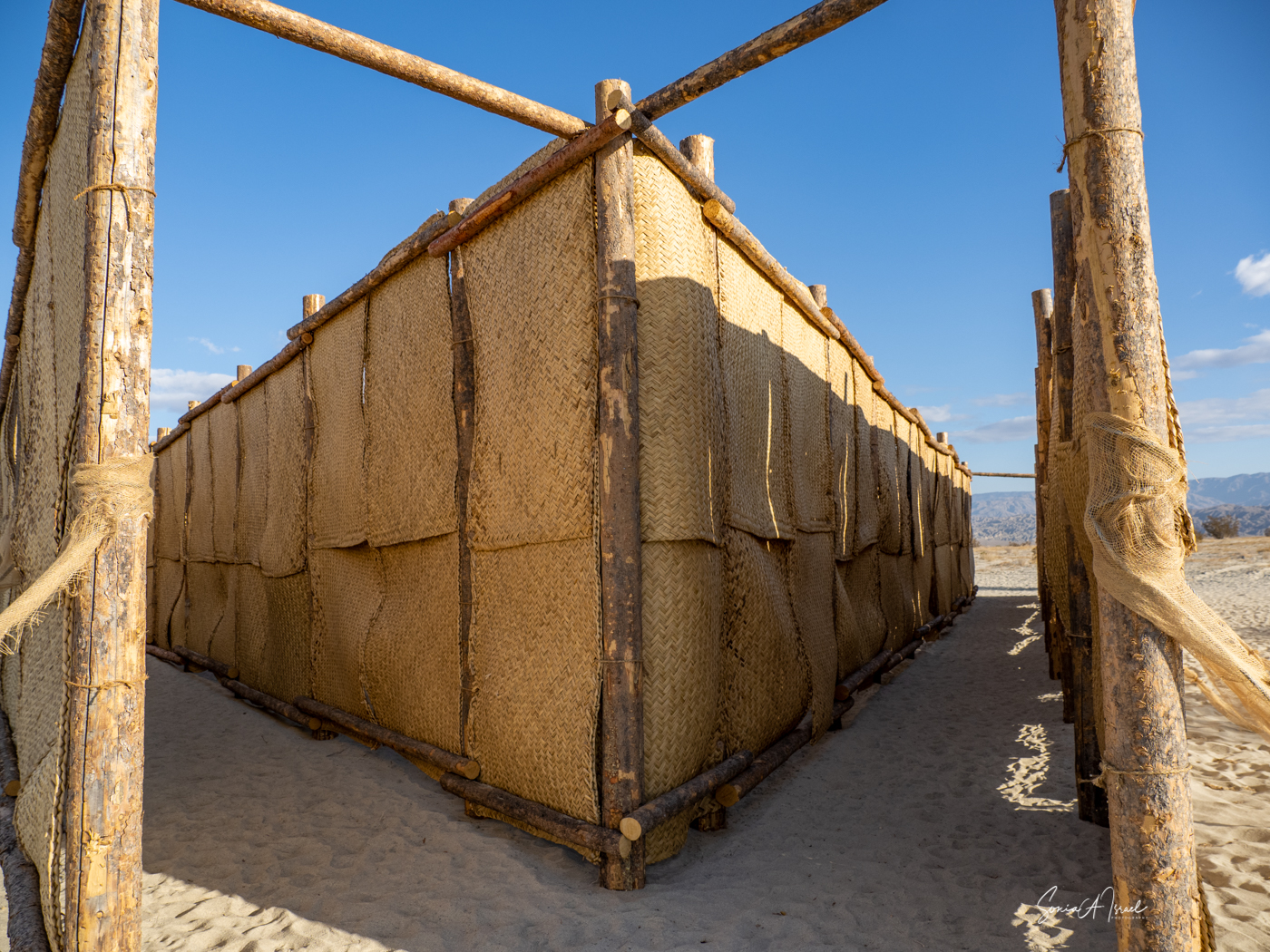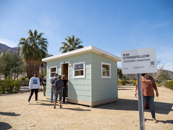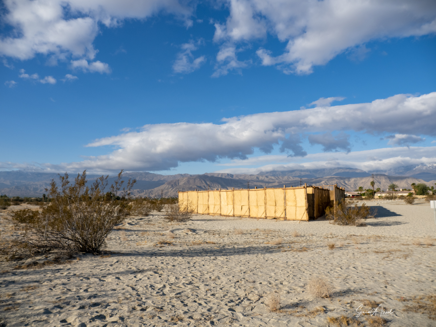 It was finally time to head back for the last two which were very close to home. Jackrabbit Homestead, by Kim Stringfellow from San Mateo, California, is a small, one room 122-sqaure-foot cabin on the grounds of the Palm Springs Art Museum in Palm Desert. There was a time when land was given to homesteaders and this little cabin represents that. There is a audioscape about the homesteading experience that I listened to as I walked around the cabin, peering in the windows. What you see is a very small, but cozy home surrounded by sky and sand. It didn’t look that bad to me!