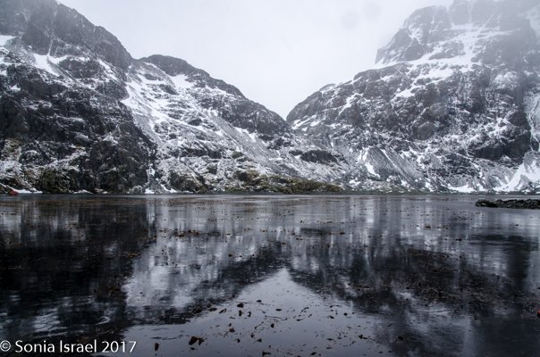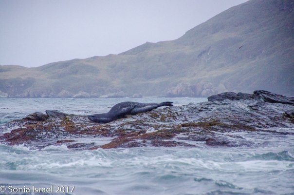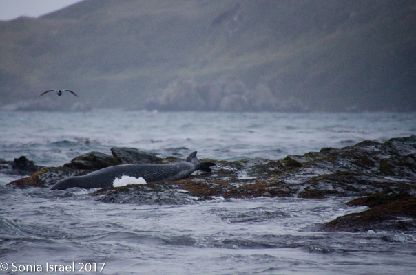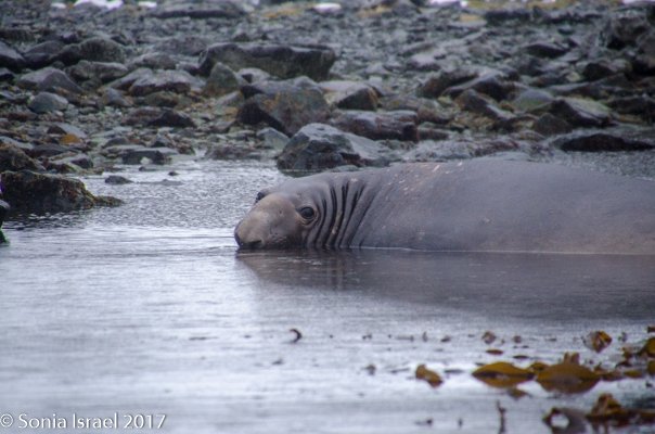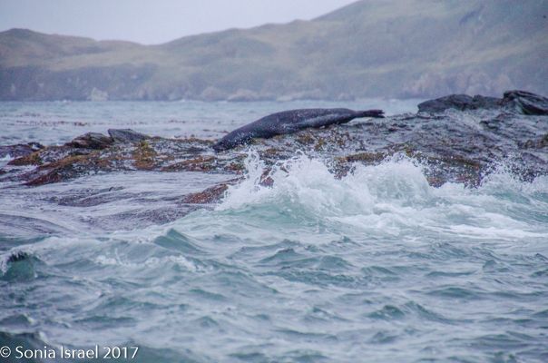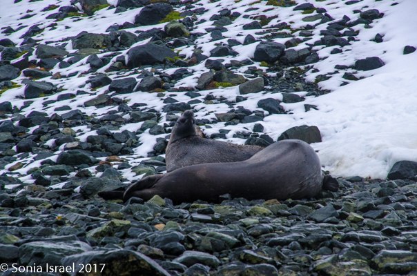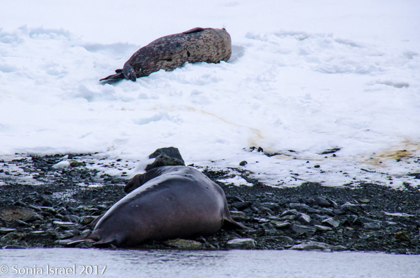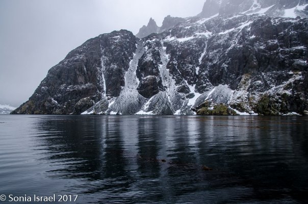 There were snow flurries that turned into rain, but that only made the mountains more beautiful as they reflected into the water. We saw young elephant seal males, all alone, probably trying to figure out what they were supposed to be doing. We saw Waddell seals nursing their pups. We saw lots