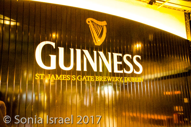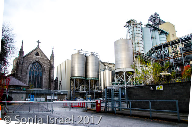 It was time to get a little lighter entertainment after the seriousness of Kilmainham Goal. From there we walked about 15 minutes to the Guinness Storehouse. The first thing you see is a view all the beer tanks right next-door to a church. Reminded me of the story of the pub at Christ Church Cathedral. As I said, the Irish love both their religion and their beer.