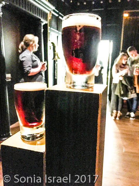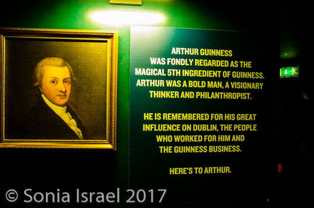 made. Sort of like a Disneyland for beer. There were waterfalls lit in blue. There were videos showing the making of the beer. There were hologram projections of people talking about the history of Guinness. For example, we learned that Arthur Guinness signed a 9000 year lease for the property. And as they say, behind every man succ