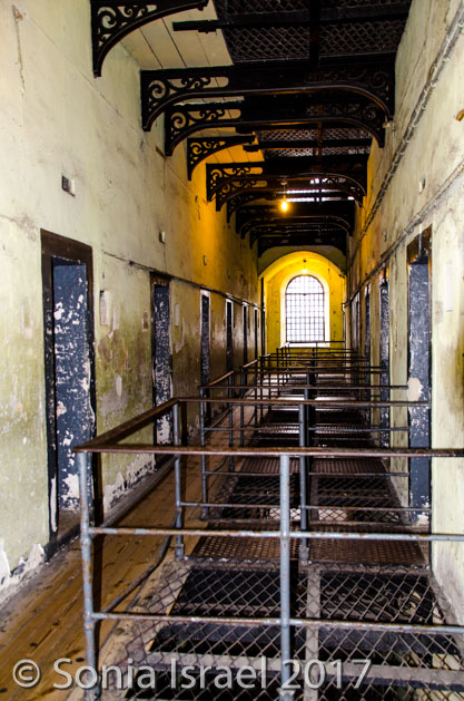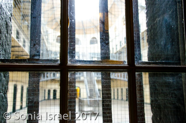 But then conditions changed and each prisoner was given his or her own cell. In 1862 they moved prisoners from their small, dark cells, to a newer, brighter area with a large central hall where the sun poured in from skylights above. There was a placard that explained: “The building has…the one great fault of all old prisons, where gloom and the exclusion of the rays of the sun were associated with punishment, in ifnorance of the fact now recognized, that the direct rays of the sun exercise an important influence on the physical state of man, his mental diseases and criminal impulses…The Board of Superintendence has given directions to have a large window put up at the end of the prison, to remedy, as far as possible, the gloom of the prison.” All I can say is “YES!” Why isn’t everyone that wise now, recognizing the importance of light!