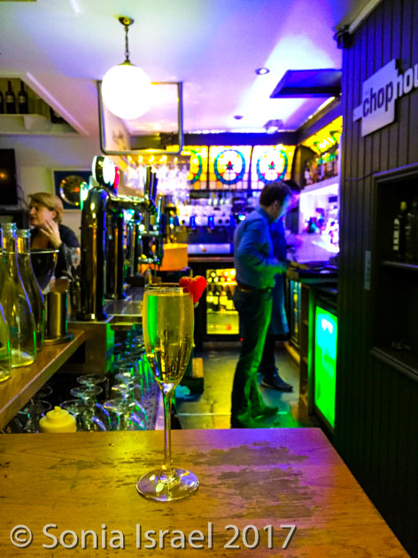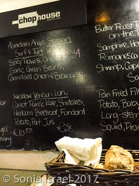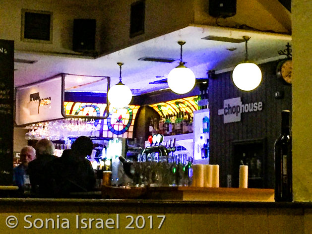 From there we took a taxi back to the hotel as it would’ve been a long walk and after all the walking we had done today, we were tired. We rested for a bit and then went out to dinner. There were just a few choices in the neighborhood. There was a pizza restaurant. There was a pub which ordered food from the pizza restaurant, or there was the Chophouse.