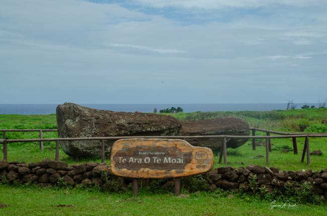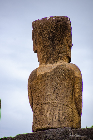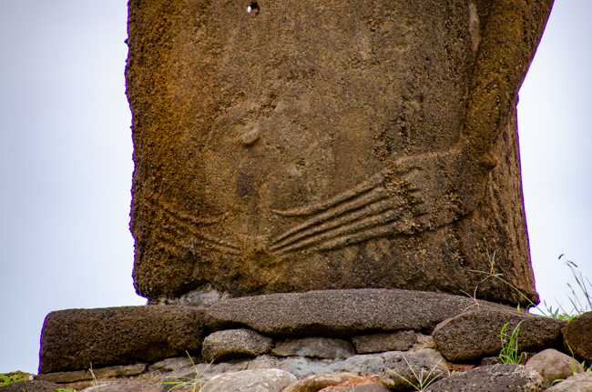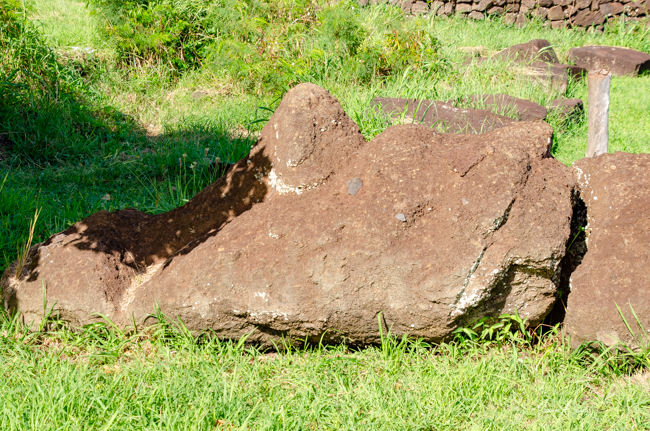 There is but one Moai here, but what an Moai. He is the only one with a name, Paro. He has been left lying down just where he landed centuries ago when he was knocked over. His body split in half, and they he remains. It is believed that Paro may have been the last, or one of the last Moai to be knocked over as there are no records of visitors seeing it standing after 1838.