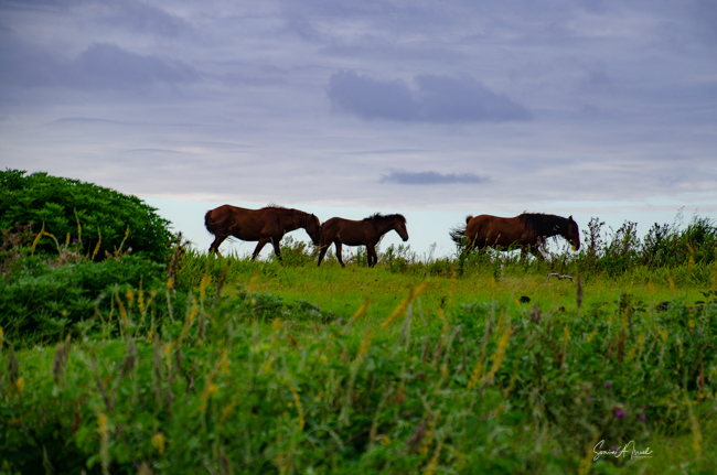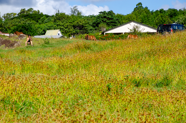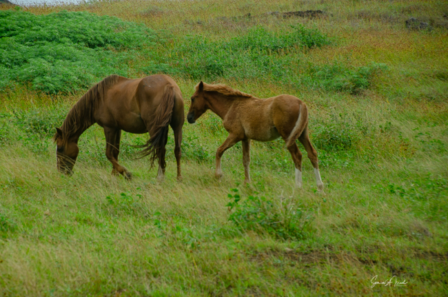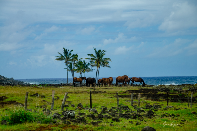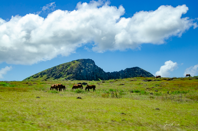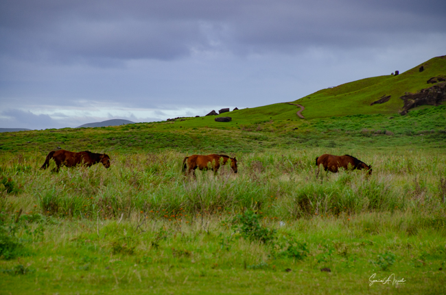 Eventually we had to leave. They literally had to pry us away. We boarded our minibus again and on the way out, saw a herd of wild horses (and then some cows). There was something even more stunning seeing these wild horses with the “wild” Moai behind them.