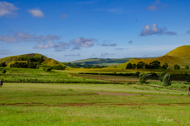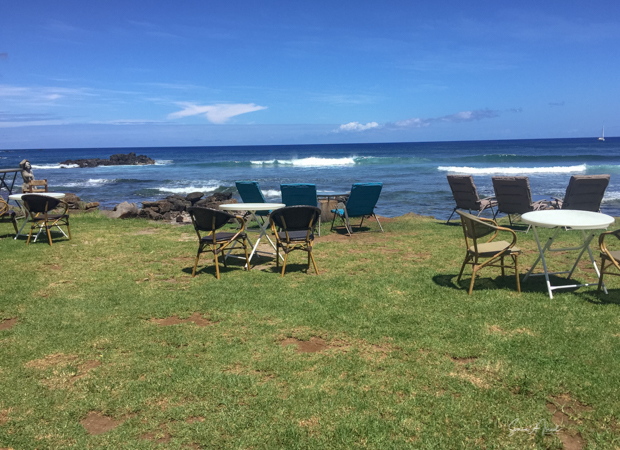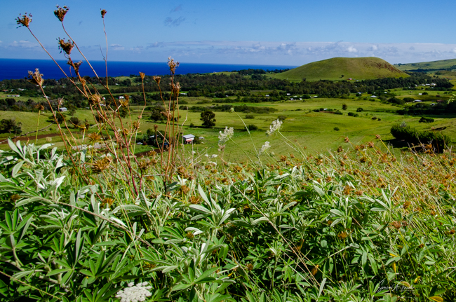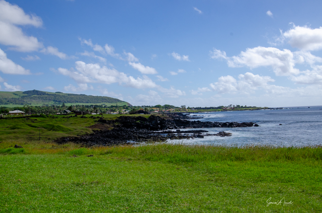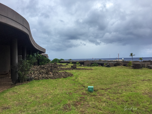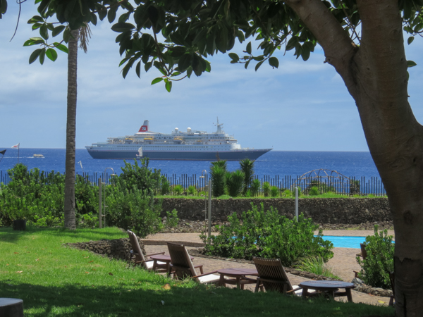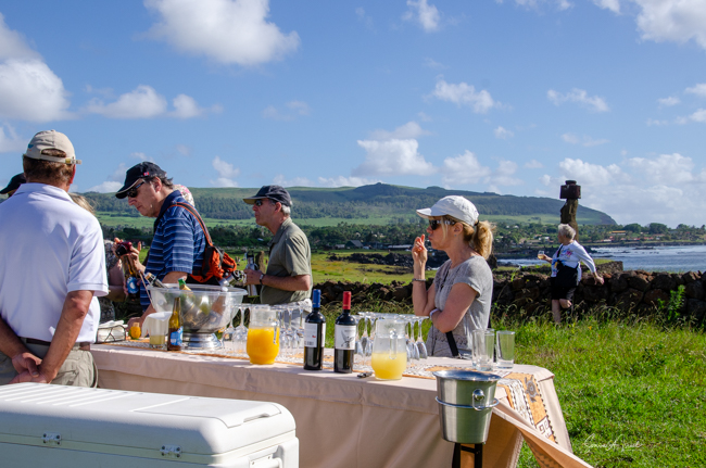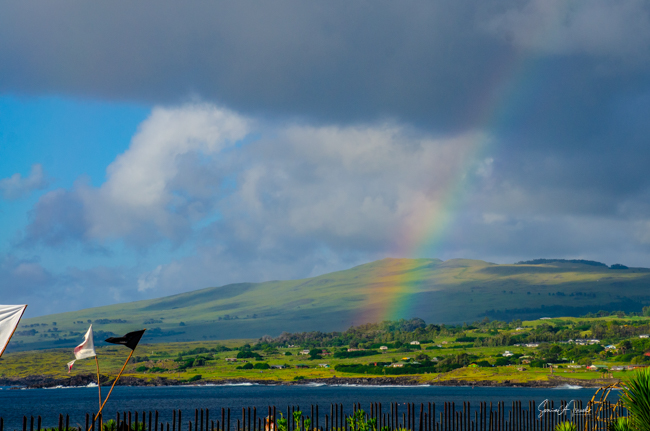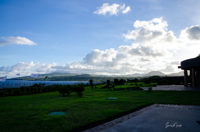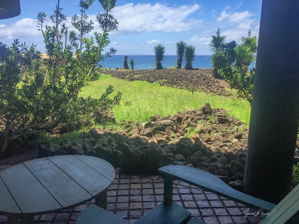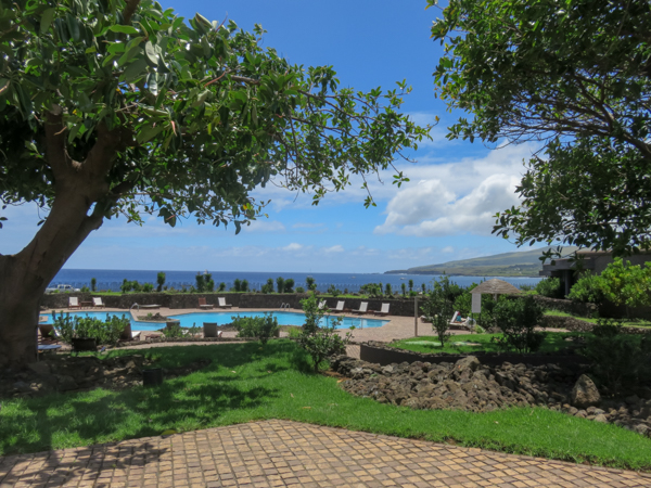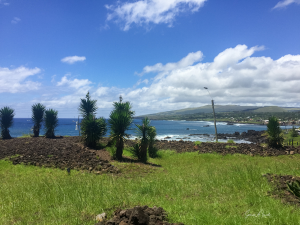 In the distance, we could just make out the festival grounds, Hanga Vare Vare, at the curve of the island. And in the evening, we could hear the music emanating from the stage. We were looking forward to being there in person (please see the separate post on the Tapati Festival), but in the meantime, it was enjoyable to sit on our terrace, enjoy the beautiful view, and listen.