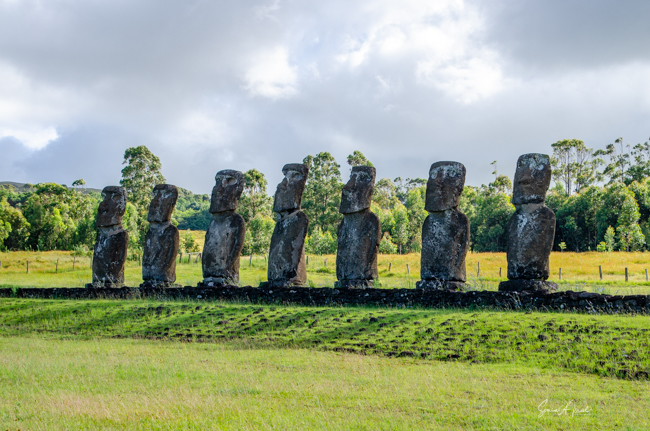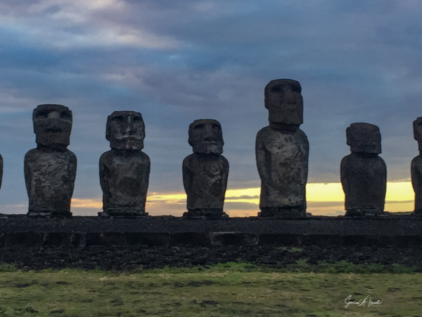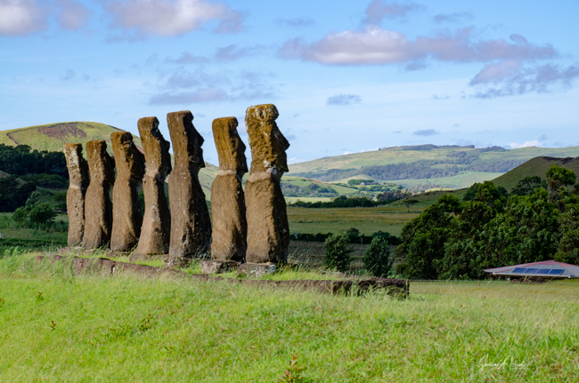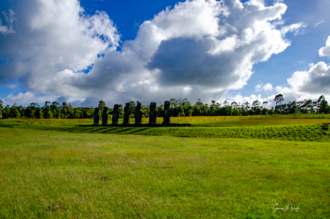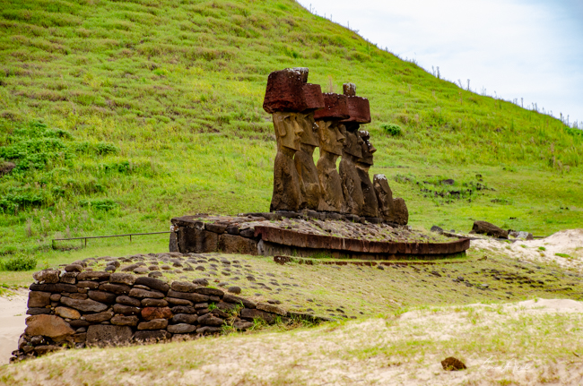 There are seven Moai here all of equal size and shape. And they all face the sunset during the spring equinox and have their backs to the sunrise during the autumn equinox.