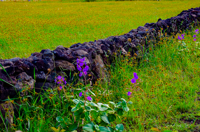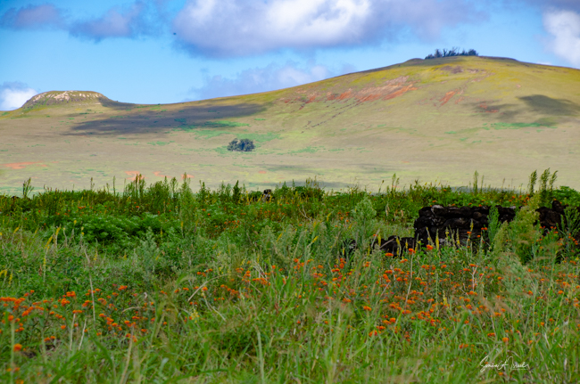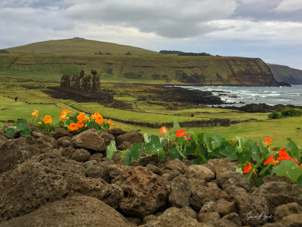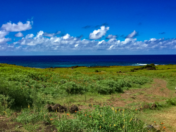 As we approached this site, we could see fields of yellow and red flowers, and in the distance, the ocean and the ahu with its Moai. We got off the bus and slowly walked through the flower field, stopping to admire the beauty, to take pictures and just be in the moment.