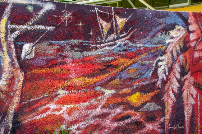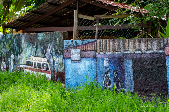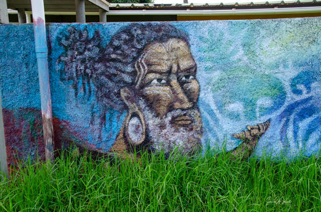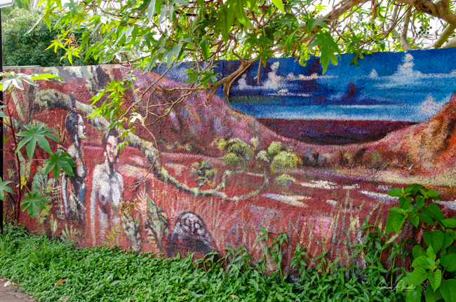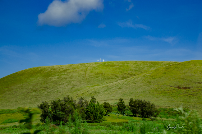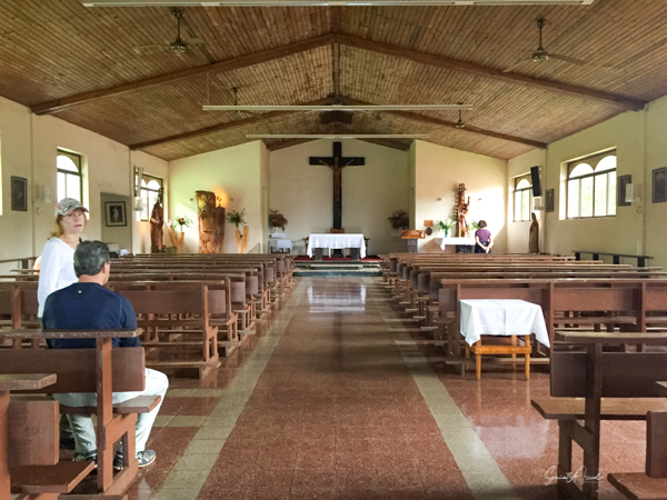 At this point, the island was leased as a sheep farm and the Rapa Nui were not allowed to leave their compounds nor practice their cultural beliefs and ceremonies. The Catholic Church and the missionaries provided a positive influence, trying to make their lives better. The church provided refuge and was a sanctuary from the Peruvians. We could see this when we visited the old church and many of the Catholic symbols were carved with the Rapa Nui symbols, including the wooden necklace found on the statue of Jesus. The wooden necklace is the Rapa Nui symbol of power (mana) and is also seen on the Rapa Nui flag.