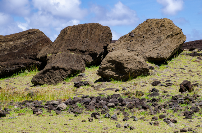 Statues found lying on the ground do not have eyes yet and are blind and have no power. There is also a superstition that the fallen Moai have fallen for a reason, so they are never lifted back up. When fighting broke out among the clans (see below), they would topple the other clan’s Moai which would take the power away from the Moai and therefore from the people.