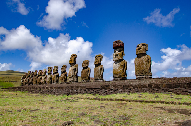 Ahu Tonjariki is the largest of all the ahus and therefore one of the most important monolithic monuments.