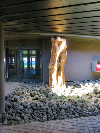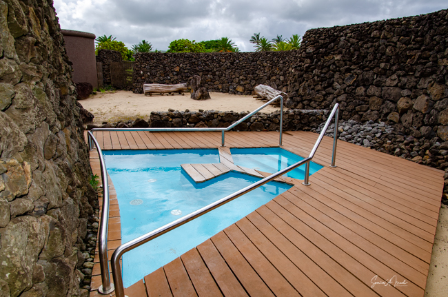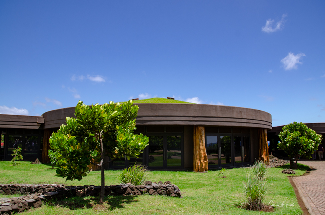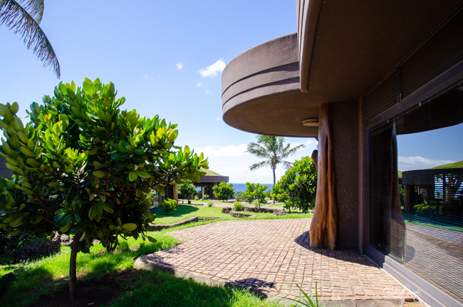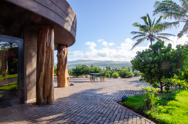 The hotel is set up like a village and all the structures are built with natural materials like wood from the cypress trees, clay and volcanic rock. But it is not just any village. It was modeled after the Orongo Village, the area where the birdman contest took place. More on this later; I promise it will all become clear. The rooms are like caves (which goes back to the Rapa Nui history), curvy and organic.