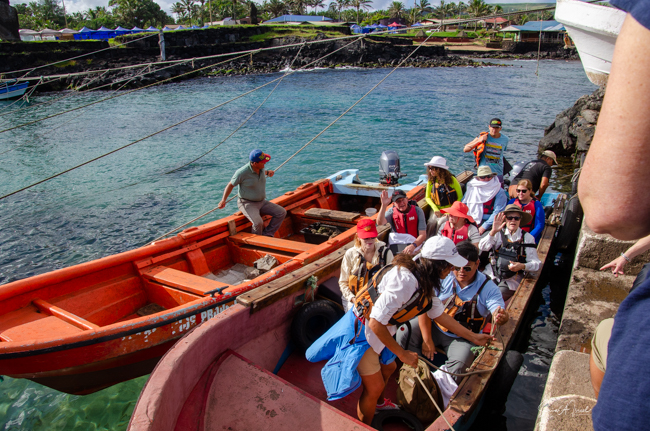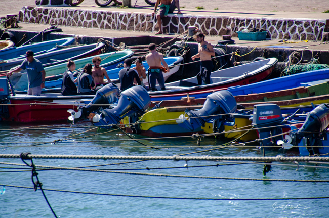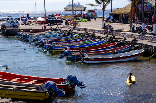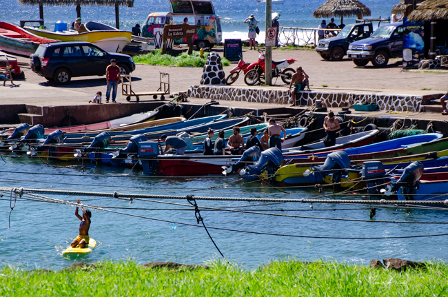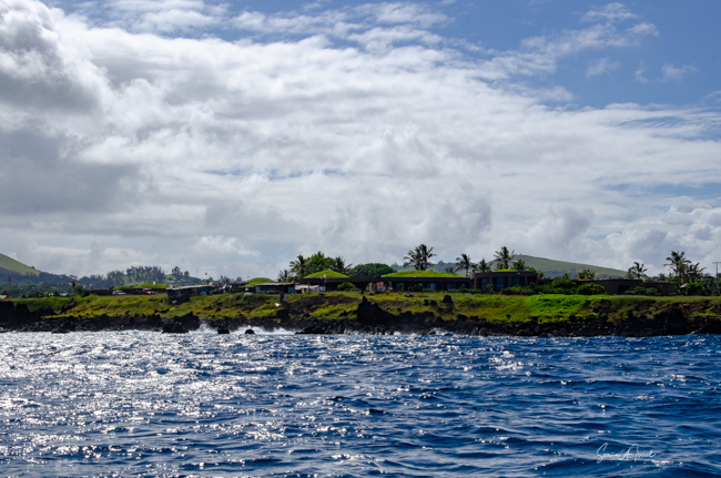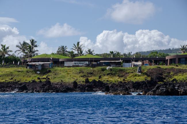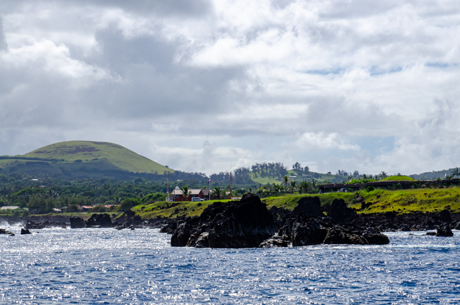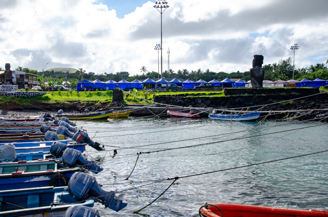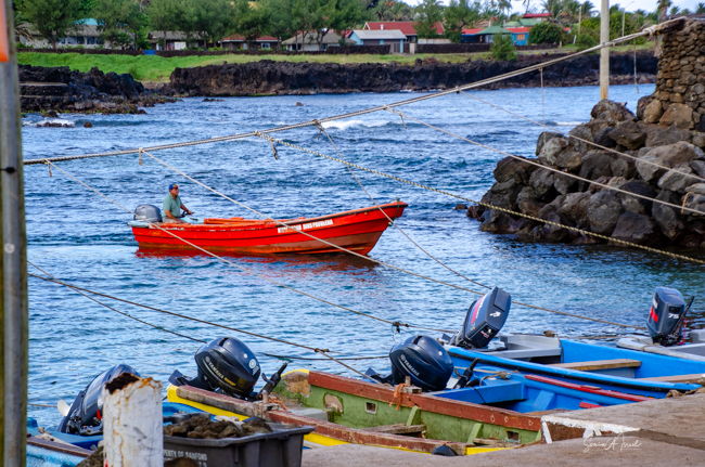 There are five coves in the small bays (hanga) around Easter Island. Hanga Roa Otai is the first place we stopped on our first walk into town. It is a very lively and crowded point serving as a port for small fishing boats and as a pier for boats transporting cruise line passengers. It was from here that we would take a boat ride a few days later.