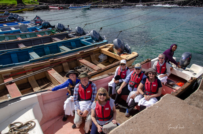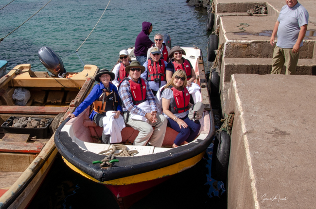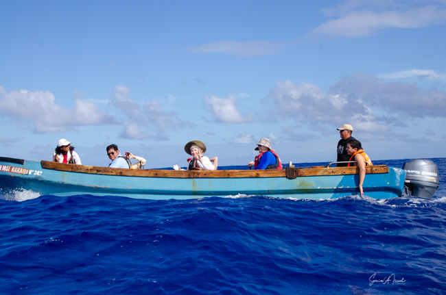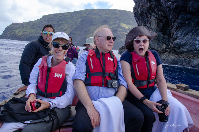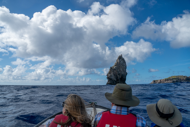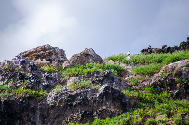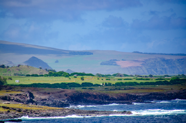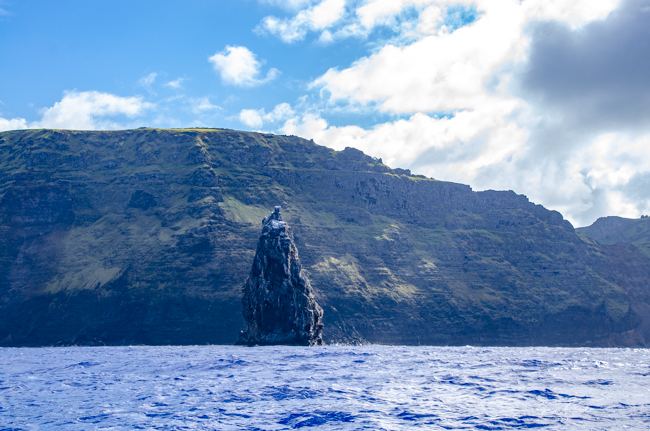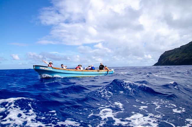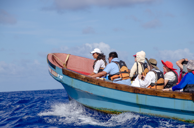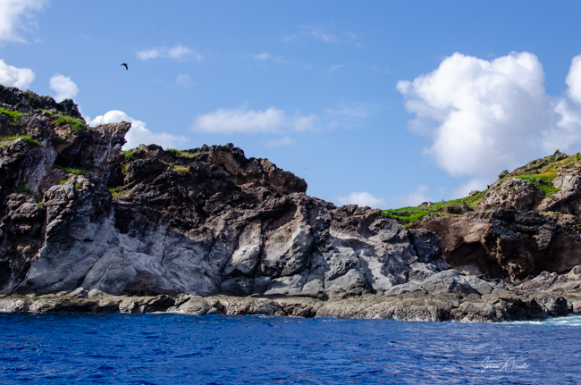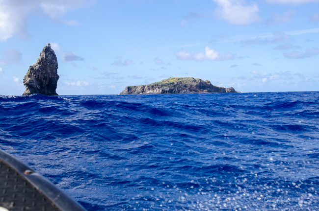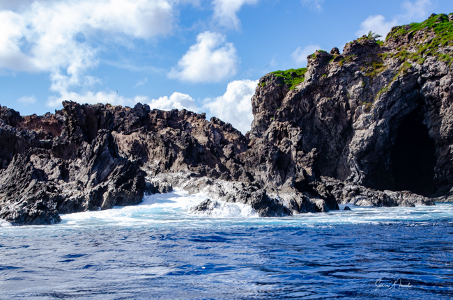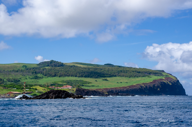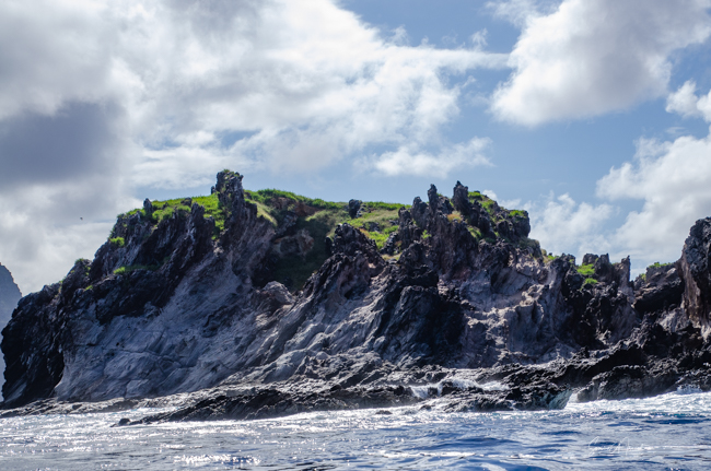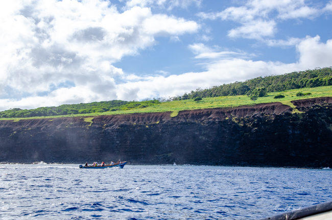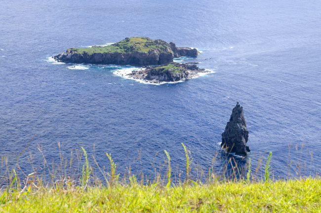 So off we went, water spraying in our faces, sun beating down on our heads, hats flapping in the wind. We flew past our hotel, past the Ahu Tahai and out towards Orongo. And then, as we approached, the boats slowed down so we could look for the birds on the islands. And as we looked back towards the shore, we tried to imagine what it must have been like to try to swim across this expanse, full of sharks and large waves. More power to the birdmen!