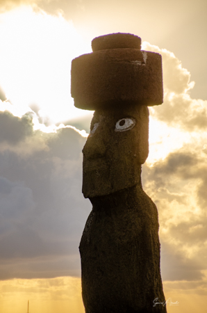 The Moai have all the power, called mana. The mana could be inherited or earned, for example if one created beautiful art, they artist got mana from his creation. But that power was only obtained once the Moai were standing on their platform (see below) and given eyes as the eyes held all the power. Eyes are also the reflection of the soul. When they got to the platform, they got their soul with eyes. Another story was that the eyes were placed when a ceremony took place. The whites of the eyes were made of coral, the iris was made of obsidian or red scoria.