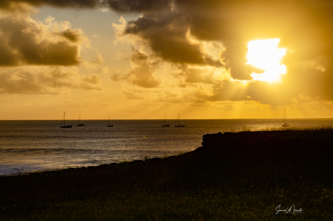 And on the way back, as the sun started to dip in the sky, we again floated past our hotel and the Moai, this time slowing the boats enough to get pictures from the side one never gets to see from land.