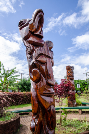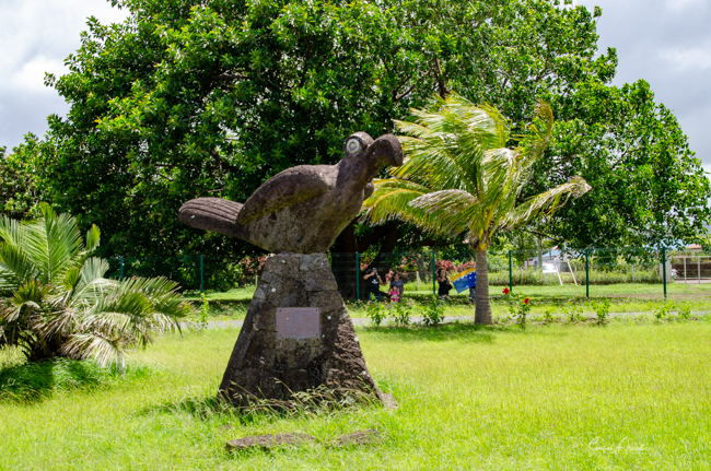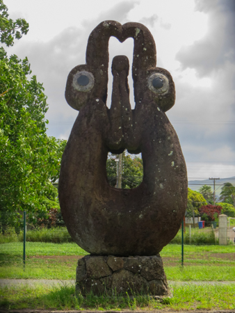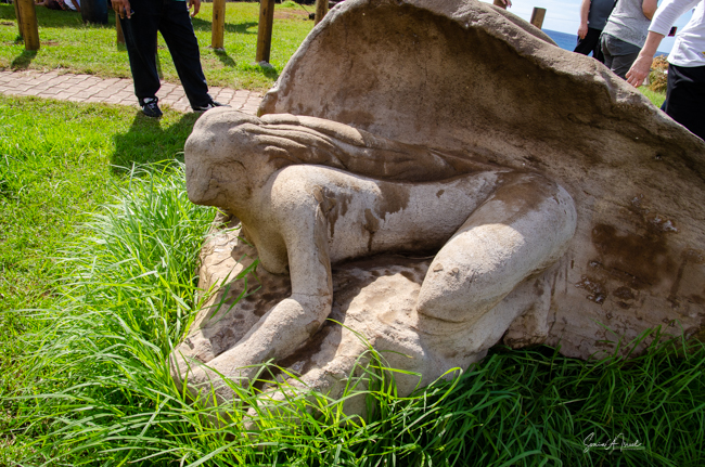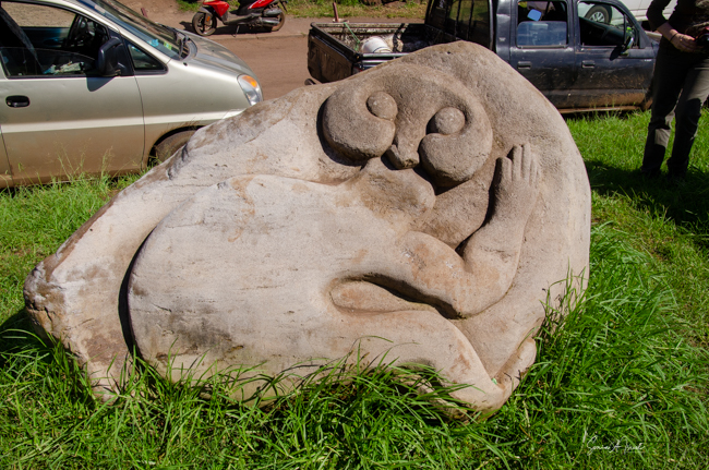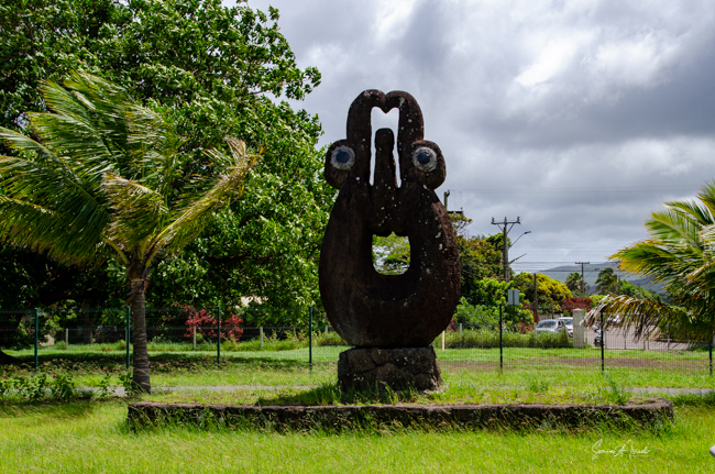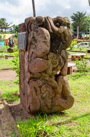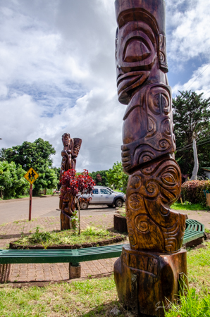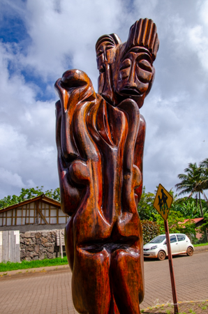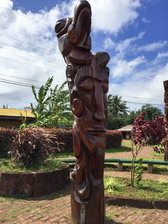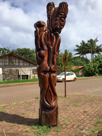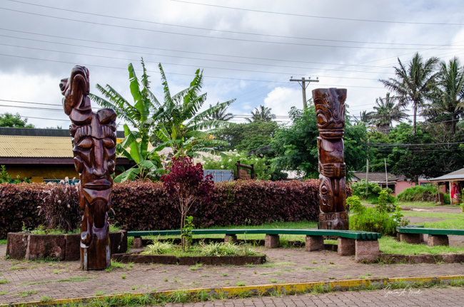 Not far from the square was a park with more statues (both Moai and busts) and a sculpture of the wood plaques that were found covered in rongorongo (symbols that may have represented writing).