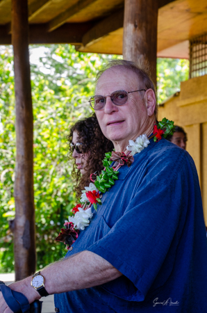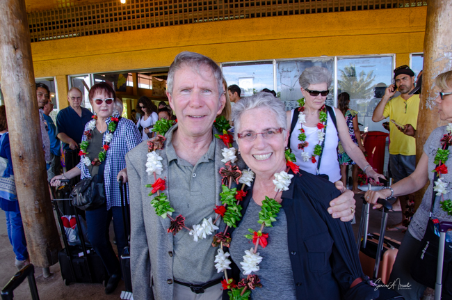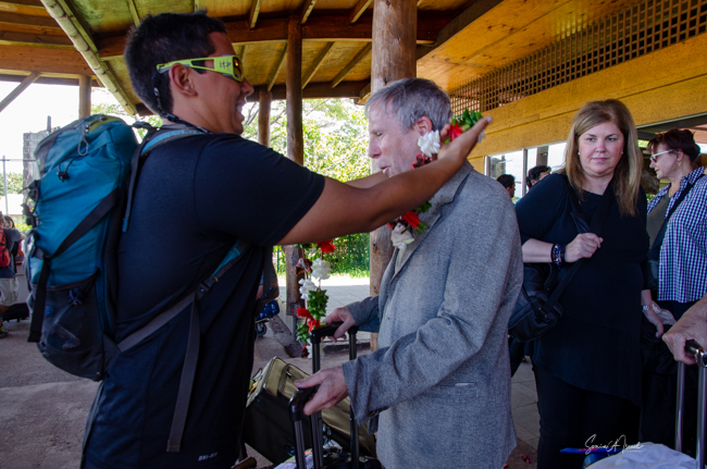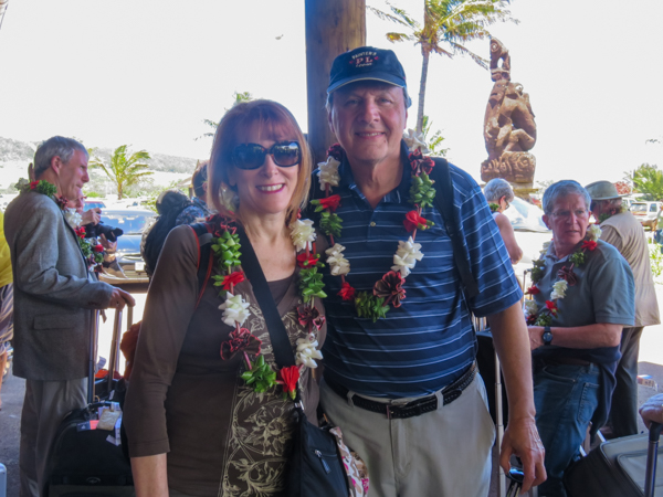 We finally made it outside the terminal and were each presented with a flower lei. Then it was onto the buses.