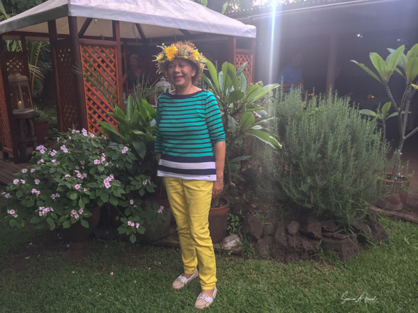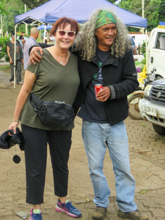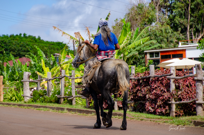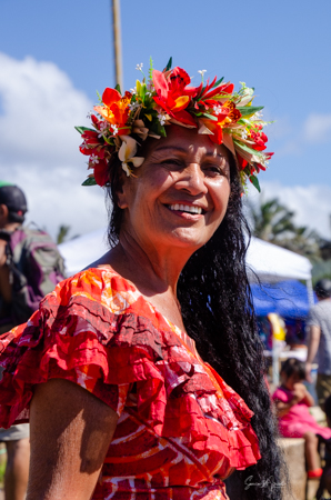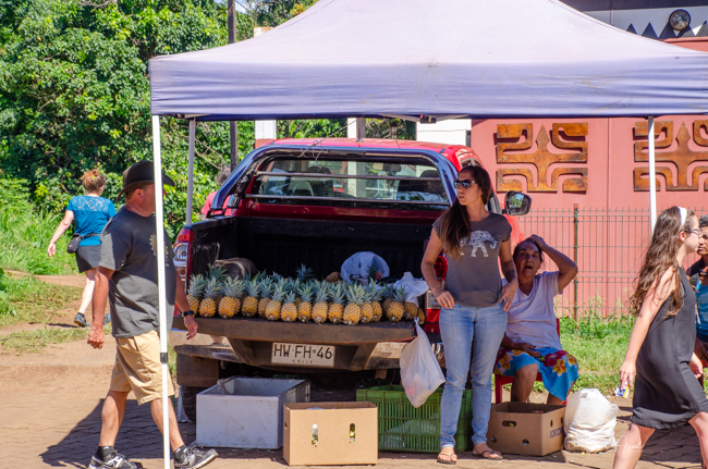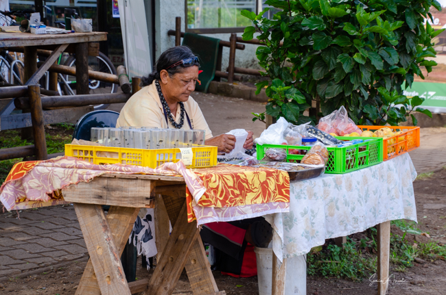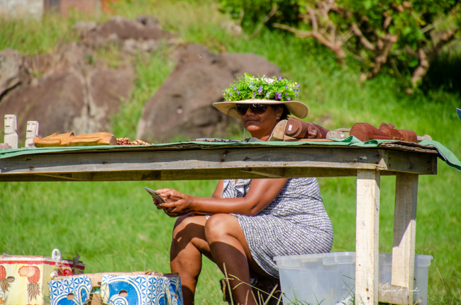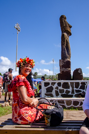 This is also where the Plaza Hotu Matu’a is with a large Moai on a pedestal surrounded by wooded benches and a large welcome sign. It was here that a most beautiful woman sat, flowers in her hair. Everyone was getting ready for the festival.