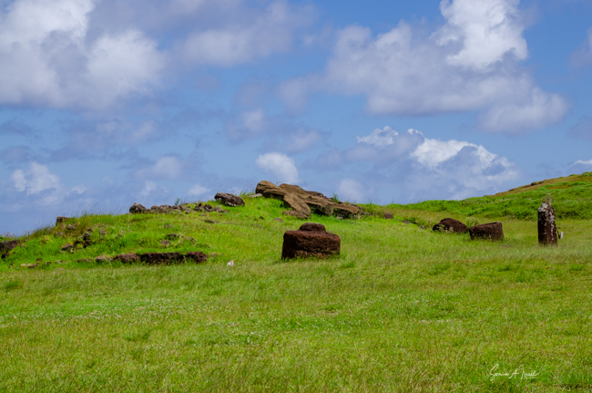 And as I walked around, it felt surreal and mysterious. How did they ever get the Moai down the mountain and out to the flats of Rapa Nui? As I explained above, there are theories, but no one knows for sure.