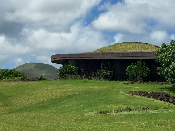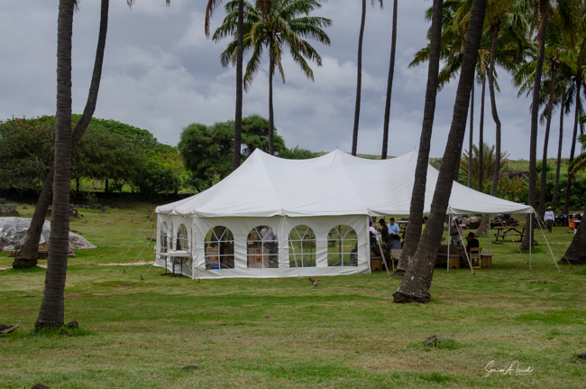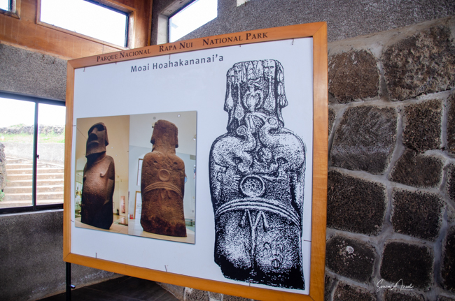 There were two additional findings on Anakena. While excavation was going on, they found a female Moai, one of the few ever found. The shape was elongated rather than the typical male Moai. The second was an original Moai coral eye with the red pupil which was found in the sand in 1978. We didn’t get to see either of these objects.