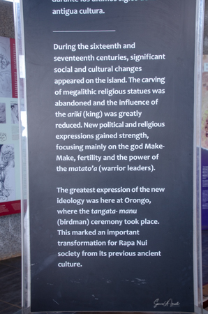 And in that void, there was radical turnaround. In 1600, the religion based on mana was recast into a religion based on power and might, and on a single god, Maki Maki. This was the end of the Ancestor Cult and the start of the Bird Man Cult.