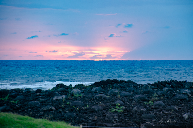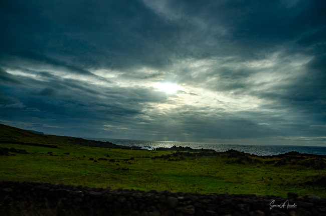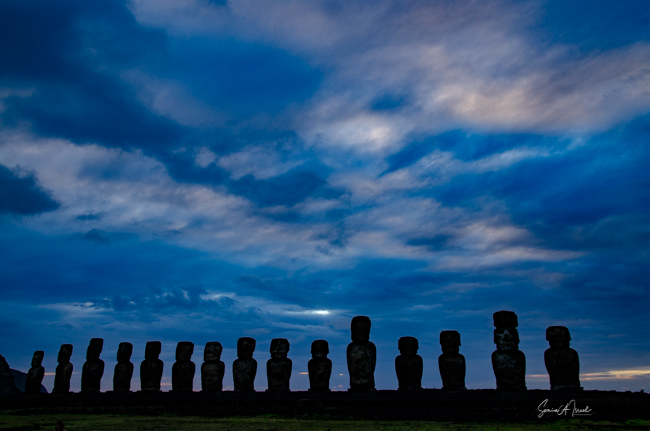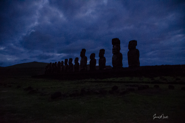 And once the sun was up, the grass turned from looking black to green, the sky behind the Moai was a bright blue, but it was still very spiritual.