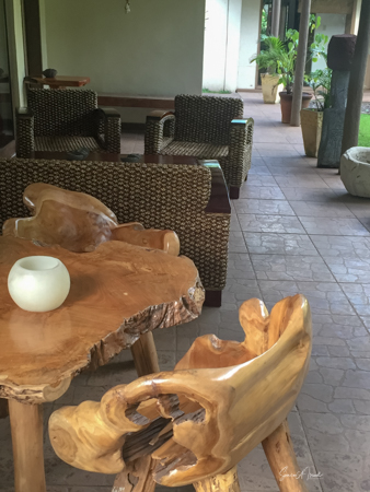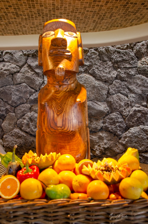 The hotel was just five minutes from the airport which was certainly convenient. It was also a quick walk into town, which would not have been the case from the Explora. So that too was convenient. We checked in and were shown to our rooms, each of which faced the ocean and each of which had a private terrace. Ours also had a (fake) Moai.