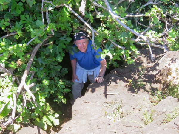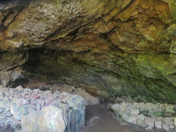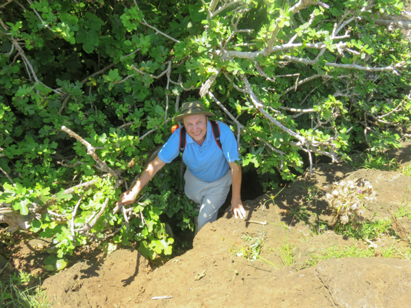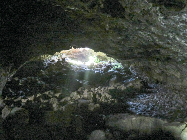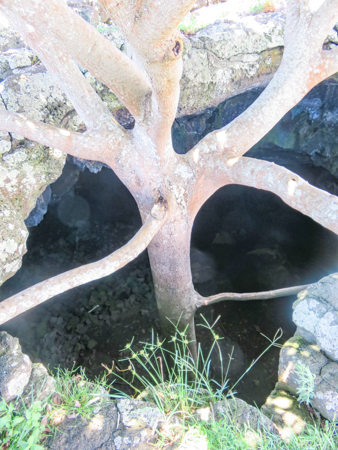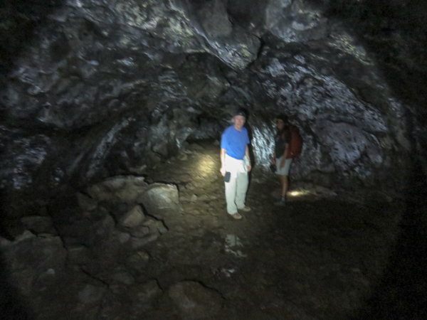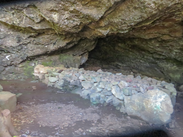 There are caves all over the island. Andy and Alan found one up near the lake. Ana Te Pahu which means “the cave of the drum.” Why drum? The think layer of hardened lava covering the cavity formed a gigantic natural drum that when jumped upon results in a vibration that can be heard inside the cave. The cave is really a lava channel created by the volcano thousands of years ago. The cavern up here is one of the largest on the island. There are several underground chambers which are interconnected. Like many of the caves on the island, this one was likely used as a dwelling place. Old stone ovens (umu pae) were found. The openings in the ceiling let the smoke out. One chamber of the cave was used to store water as the rain could be collected there. And of course this is where the Rapa Nui could hide during the different clashes between the tribes.