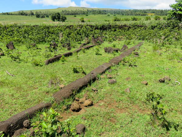 A fourth difference is that this ahu had a large circle of stones on the ground in front of it with a diameter of 32 feet. This circle is called a paina and it is where commemorative rituals were performed honoring different members of the family.