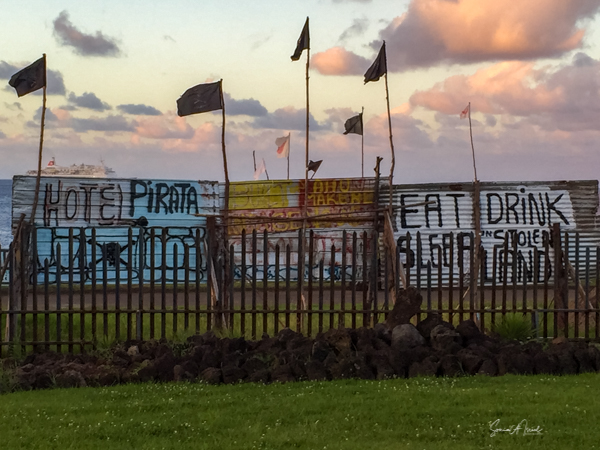 In the previous year, 1887, Captain Toro had been sent by the Chilean government to buy the main sheep ranch, which covered most of the island, and to negotiate the annexation of the island from the Catholic mission authority. He landed on Easter Island in the fall of 1888, and that is when Atamu, along with 11 other chiefs, signed the treaty of annexation. During the ceremony, Atamu gave Toro a handful of grass to feed the livestock, and took a handful of dirt to put in his jacket pocket, symbolizing his people’s sovereign claim to the land. This has been interpreted as Atamu giving Chili the right to use the land, but not ownership of the land itself. That of course, is not how Chili saw it. Nevertheless, the flag of Chili was raised under the flag of Rapa Nui.