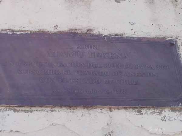 Atamu Takena was the king (called Ariki) from 1883 until his death. He had been appointed by the missionaries to represent them as there had been no real ruler in the previous 20 years. In 1898, he signed a treaty of annexation giving Easter Island to Chile in a ceremony officiated by Captain Policarpo Toro.