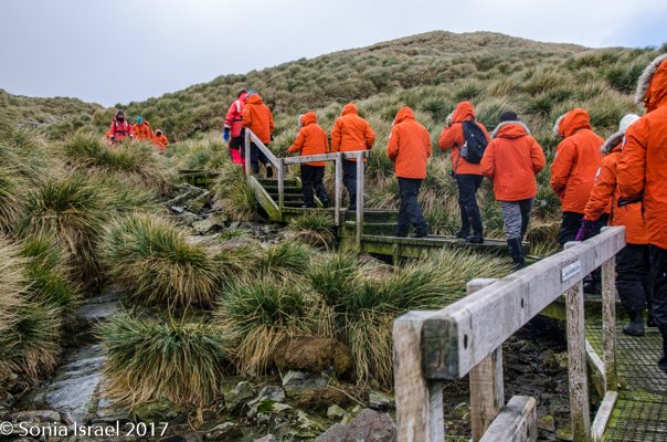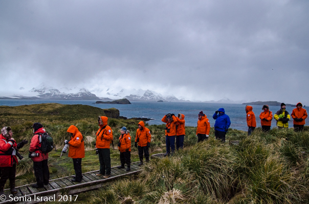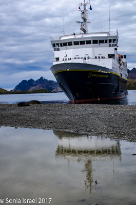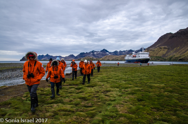 The hikers among us were up early to walk in Shackleton’s footsteps on his last leg of his epic crossing of South Georgia, up the mountain and down the other side. The hike was 4 miles long with 1000 feet of elevation over tussock grass, snow, mud, grass, gravel, boulders, glacial plains with streams and varying depths of snow. We dropped them off at Fortuna Bay and then continued on our way to Stromness Harbor.