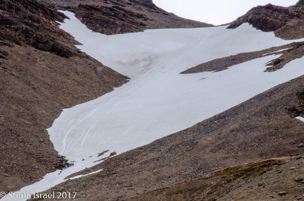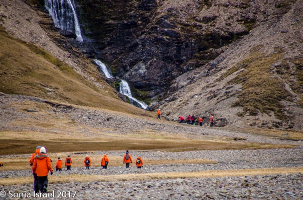 We walked about 2 miles from the beach inland, on flat terrain, to the Shackleton Waterfall (everything here is named for The Boss).
