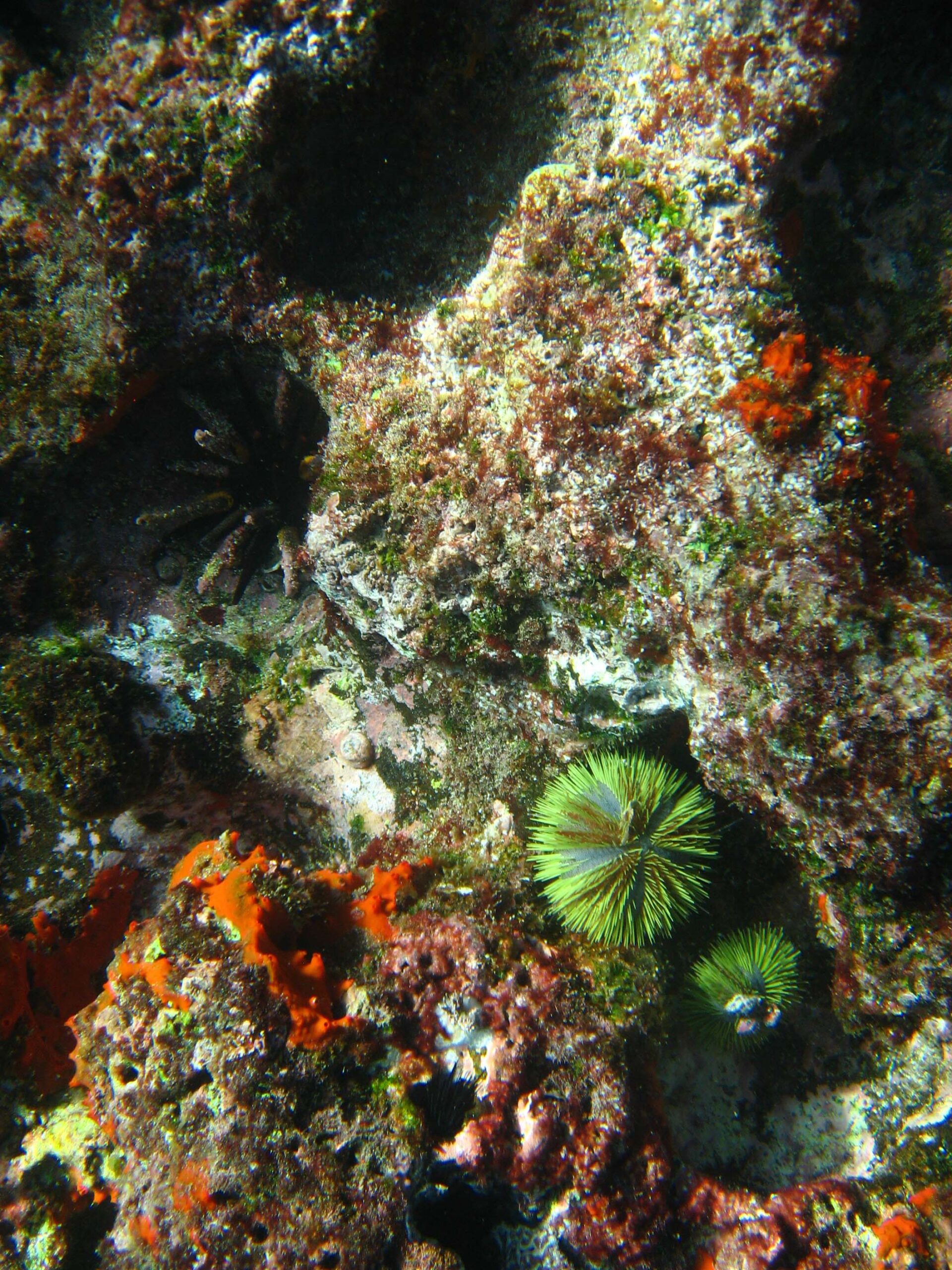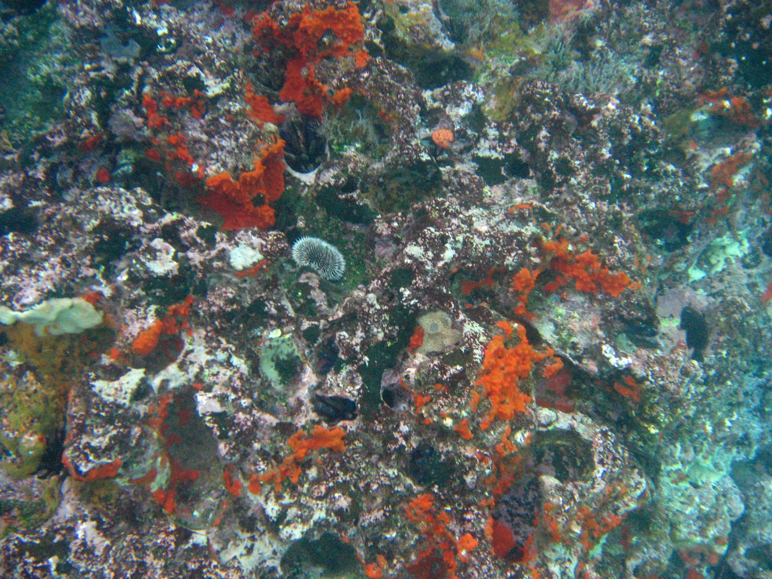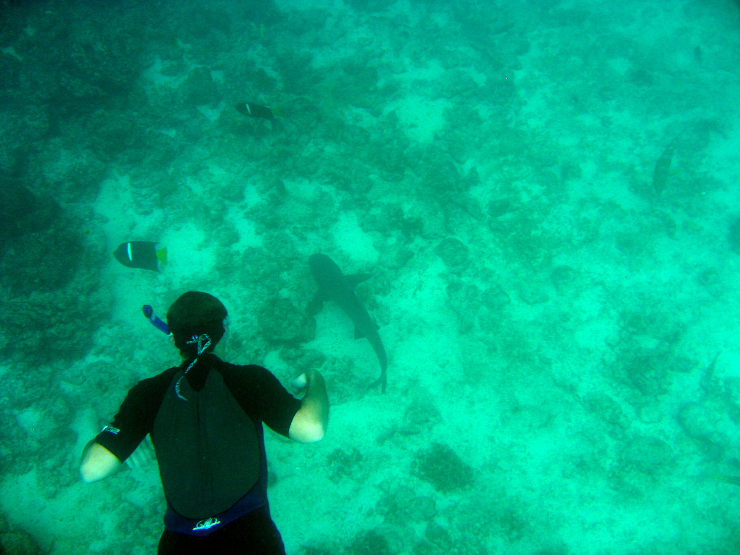 In the afternoon we went snorkeling again. We went out about 45 minutes in the zodiac, to swim along a wall that had beautiful sponges and sea urchins and fish all around. We saw our first shark (a white tipped shark who swims along the sandy bottom of the water – not dangerous), and hundreds of other fish, many of which I’m beginning to recognized and am able to name (although probably not for long). I have learned to relax with my head in the water, although I must add that having a prescription snorkel mask really helps.