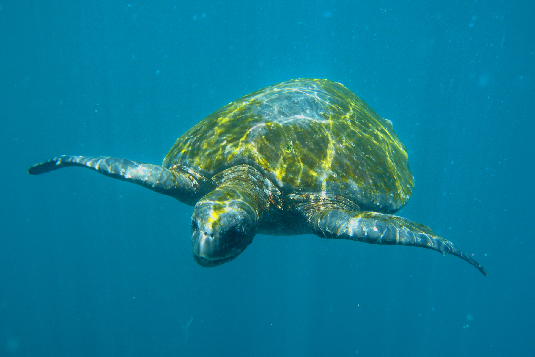 Then it was back the ship for a quick change into swim suits and snorkel gear and back out on the zodiac to snorkel back at the cliffs of the Punta Vicente Roca, the same place we had just cruised. This of course meant we were snorkeling with turtles, penguins and yes, sea lions, as well as all sorts of fish. We didn’t actually see any penguins while snorkeling (that was disappointing as it would have been incredible), however, we did get to snorkel with turtles was in itself was amazing. And yes, I have pictures to prove it. Now, if you read the paragraph above, you will recall that the waters here are frigid enough for penguins. As it turns out, weather everywhere is a bit crazy and the water temperature was somewhere in the low 70s, cold when you first get in, but then you don’t want to get out.
