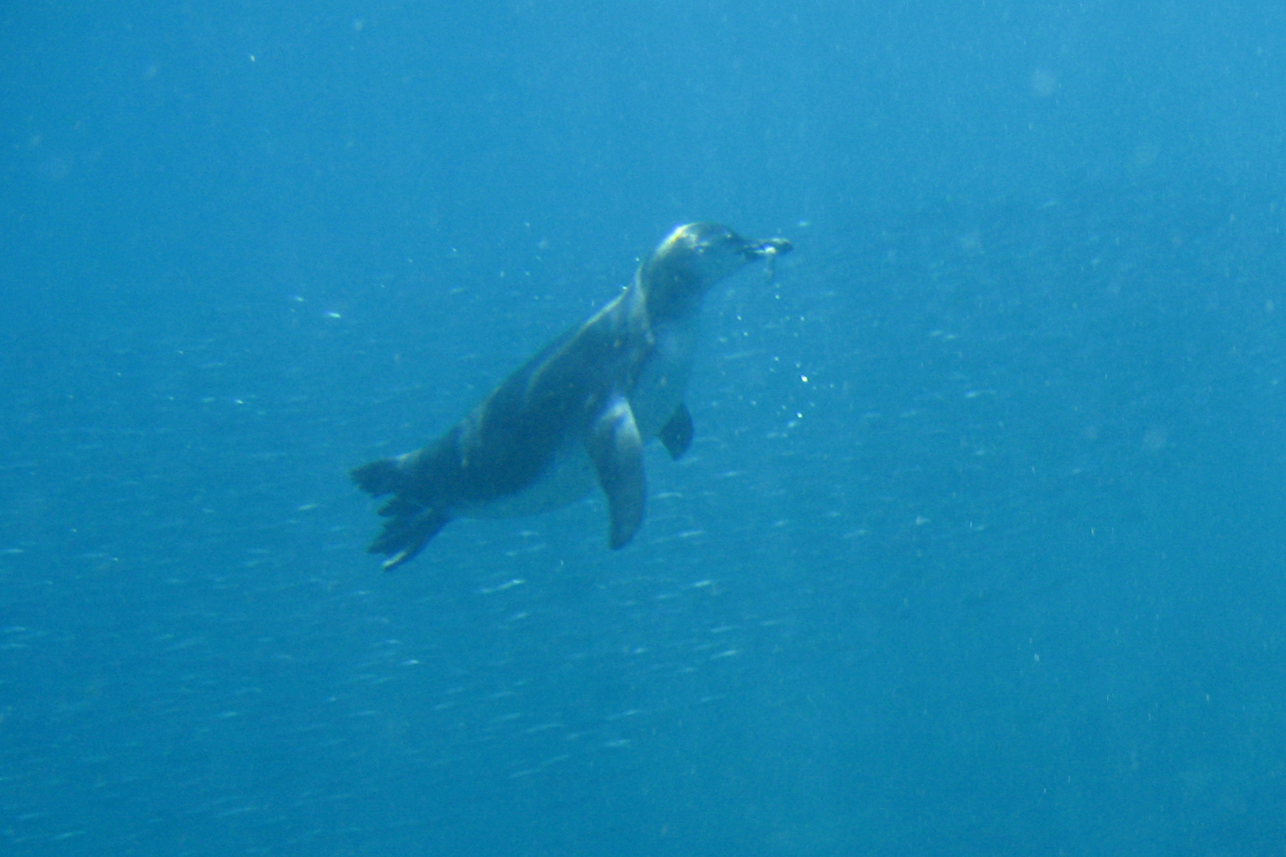 Then it was back to the first beach to swim and snorkel. The water temperature was just right and this time we got to walk into the water from the beach rather than jumping in from the zodiac. We were also able to swim at our own pace with our buddy rather than staying with a group (although there is always a zodiac watching out for us). Andy and I swam off and watched the parrot fish, puffers, white-tipped sharks, sea stars (4 different ones including one called a chocolate chip star. These used to be called star fish, but since they are not fish, the name was changed). I saw a parrot fish eating a sea urchin. We saw schools of razor back fish and schools of very tiny fish such that it seemed like the whole water was filled with them. But, we didn’t see any swimming penguins. Later we found out that some of the snorklers did get to swim with two penguins, but it just wasn’t meant to be for me. So the swimming penguin pictures belong to Franklin.