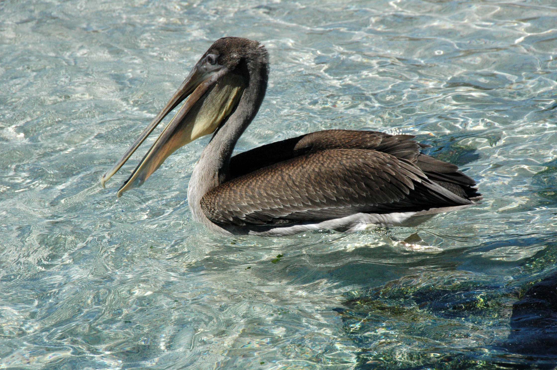Then it was back to the ship for breakfast, a quick change into wet suits and off to go snorkeling along a small offshore volcanic cone named Champion Islet. We did what is called drift snorkeling – you let the current take you along and you just enjoy the fish. The zodiac drops you off but stays close by in case anyone needs to stop or to rest. We saw beautiful fish, star fish, some coral and sea lions. We also had a chance to go looking for the Floreana mockingbird, a bird that lives only on this island. We saw many of them (some people never get to see any) as well as lava herons, brown pelicans (which always reminds us of Roxi), sea lions (of course – they are every where), blue footed boobys and swallow tailed gulls.