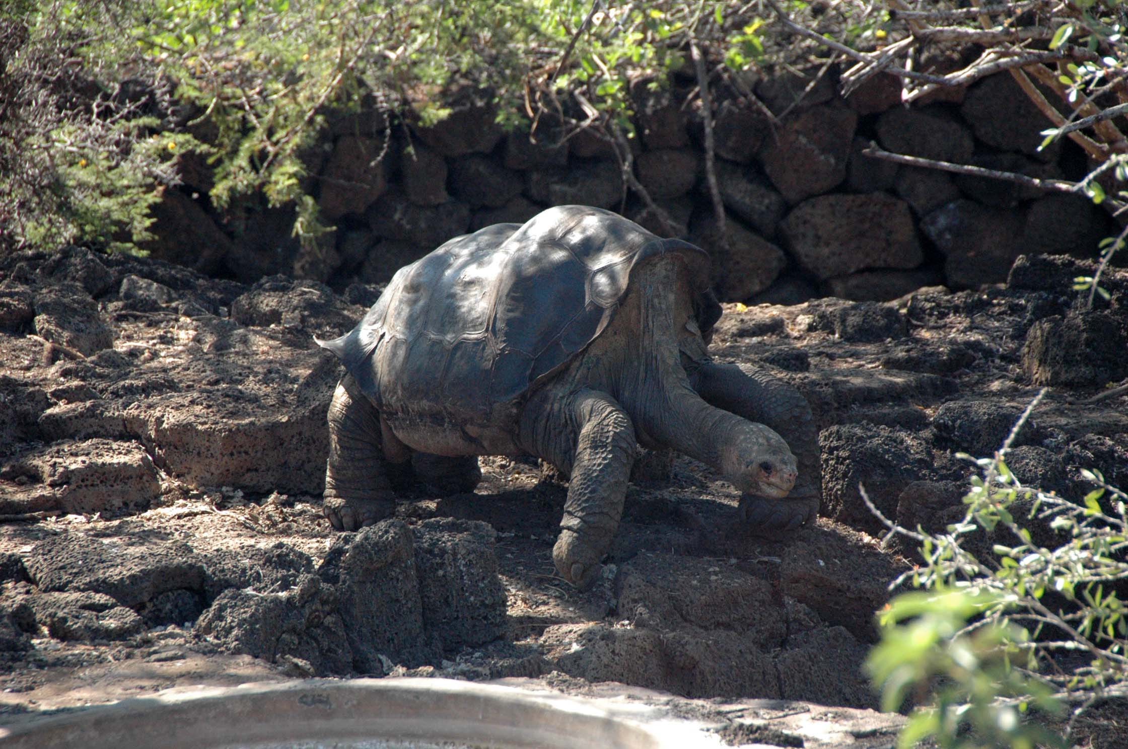 Santa Cruz Island – an island of contradictions. Today was a day totally on land, and in a city with cars and buses and people and shopping – it was a shock to the system. We began in Puerto Ayora where 15,000 people live. It is considered the hub of the archipelago. We landed with the zodiacs at the main town dock and then boarded buses to the Darwin Research Station where we visited the tortoise breeding program. Some of the tortoises, particularly from the Galapagos tortoise from Espanola Island, were becoming extinct (back in the 1970’s). They had some females but no males. So the word was sent out and a male was found – where? At the San Diego Zoo, which donated him back to the Galapagos. Diego, as he is called, was happy to mate and now, 40 years later, that particular tortoise has been reintroduced to the island. We saw giant tortoises and baby giant tortoises smaller than the ones Sarah once had.