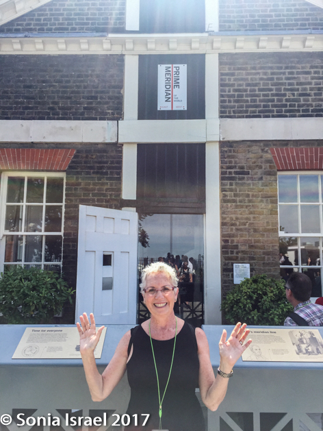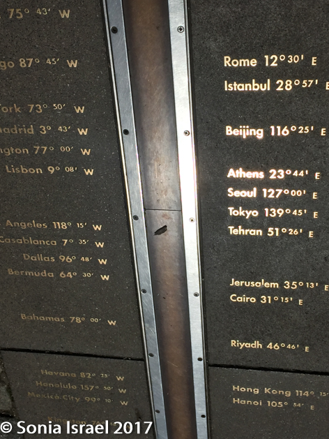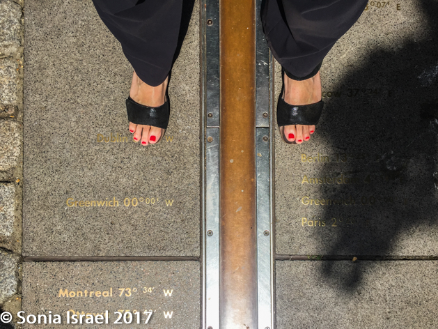 So I moved along in the line, waiting my turn to straddle the meridian. After about 20 minutes I reached the top of the meridian line and could see the marks of each major city and its Greenwich time. The sun was overhead so the shadows were wicked and made taking pictures difficult. But that didn’t stop any of us.  I finally reached the head of the line, put one foot on the eastern hemisphere and one foot on the western hemisphere and had my picture taken. It sounds so simple. But it was actually quite exciting.