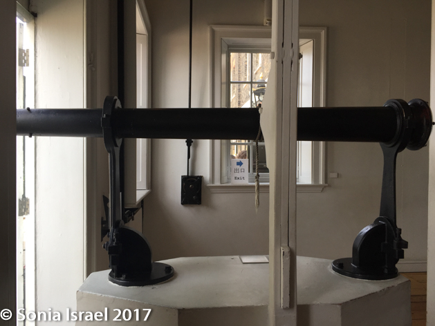 The taxi dropped me off right at the observatory, and I quickly went in to get my ticket. I say quickly because I wanted to be there by 1 o’clock to see the ball drop. No this isn’t New Year’s Eve in Times Square. This is the big red ball which every day at at 12.55, rises half way up its mast. At 12.58 it rises all the way to the top. At 13.00 exactly, the ball falls, and so provides a signal to anyone who happens to be looking. This is how the astronomers could send the mariners the correct time so they could set their chronometers. And anyone that could see the ball could also set their watches. So that bright red Time Ball on top of Flamsteed House is one of the world’s earliest public time signals, distributing time to ships on the Thames and many Londoners. It was first used in 1833 and still operates today. Or does it….