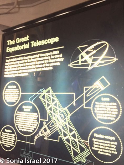 When is the tour was over, I wandered around some more looking and learning about the different meridian lines (until the prime meridian was chosen), the different telescopes used to find longitude and the stars. I walked over to the gift shop where I noticed stairs leading up to the big, big, big equatorial telescope which is used to study the planets.