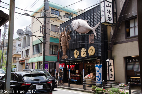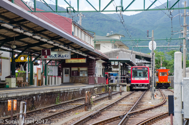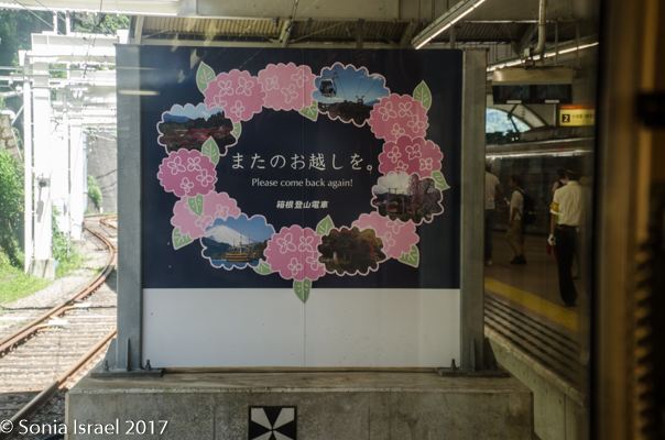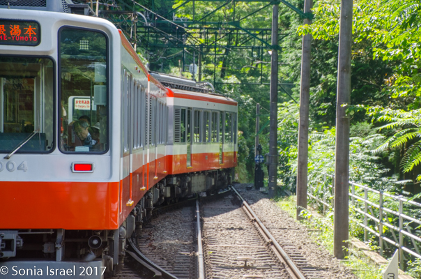 The Tozan Railway is the only mountain railway in Japan. Our destination was Hakone-Yumoto which sits at 314 feet above sea level (compared to Gora which is 1774 feet above sea level). Halfway up the line there are switchbacks, where the driver and the conductor change shifts and the train is switched to go in the reverse direction. I don’t thing this happens anywhere else in the world,